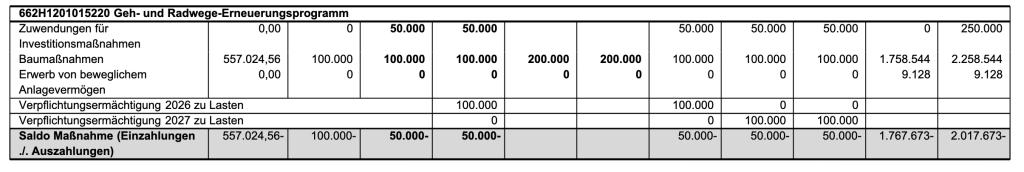 Haushaltstelle 662H1201010170 Anlegung von Geh- und Radwegen Gemeindestraßen