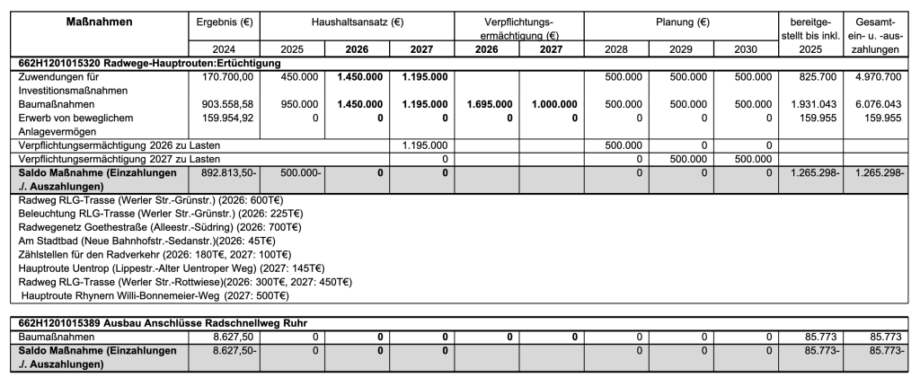 | Radhauptroute | Maßnahmen 2026/2027 |